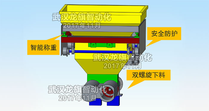 2、移動接料系統(tǒng)內(nèi)含有自動稱重系統(tǒng)和雙螺旋下料系統(tǒng);