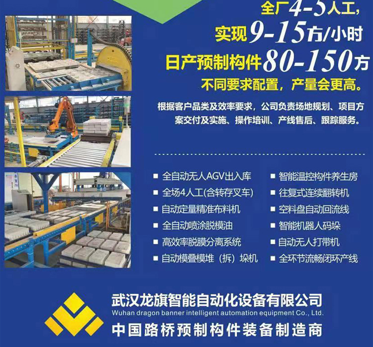 3、龍旗智能擁有預制構件生產(chǎn)線設備多項國家專利技術。預制塊機械設備核心部件精工制造,采用抗疲勞設計,延長了主機的使用壽命。